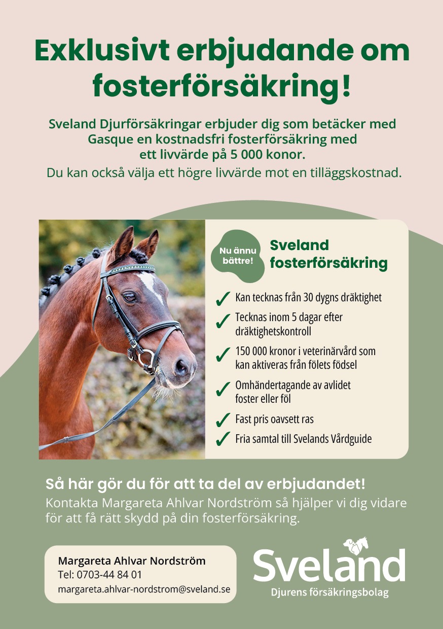 Gasque ger både gång, hopp, exteriör och framför allt nedärver han sitt underbara temperament.
